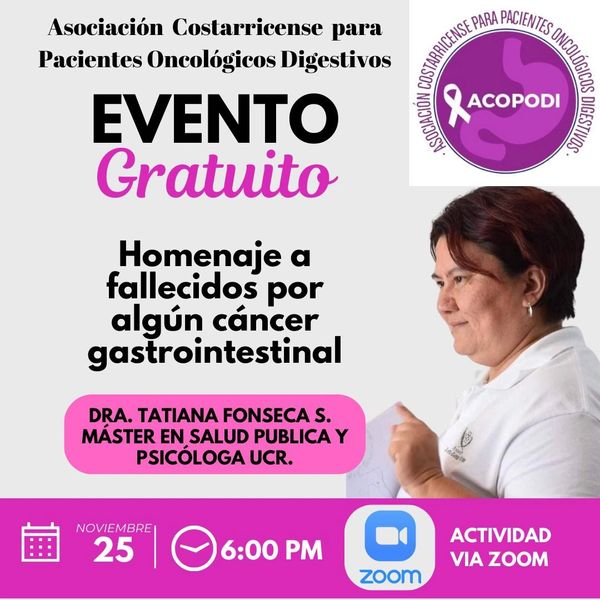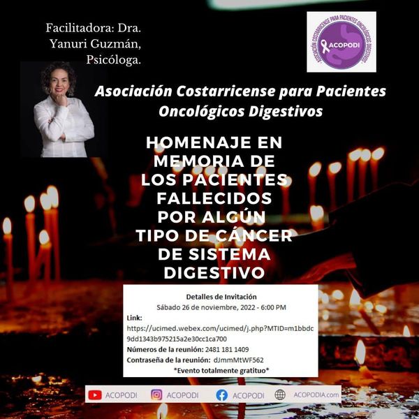 Una vez al año, en noviembre, ACOPODI realiza un homenaje en memoria de los seres queridos fallecidos a causa de algún cáncer del sistema gastrointestinal (colorrectal, vías biliares, estómago, esófago, páncreas, hígado. etc).