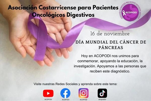 16 de NOVIEMBRE: ACOPODI efectuó un Conversatorio sobre Cáncer de Páncreas en el Marco de la conmemoración del Día Mundial del Cáncer de Páncreas. Contamos con la valiosa participación del Dr. Omar Alfaro Presidente de la Asociación de Especialistas Gastroenterología y  Endoscopía Digestiva de Costa Rica.